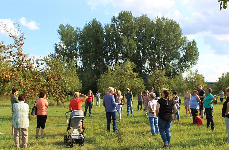 Deutlich wurde auch, dass auch ältere Bäume oder Totholz zu einer Streuobstwiese gehören, da sie nicht nur Höhlenbrütern, sondern auch verschiedensten Insekten Unterschlupf bieten. Zum botanischen und tierischen Reichtum einer Streuobstwiese tragen auch verschiedene Pflegemaßnahmen bei, etwa Kräuter lange stehen zu lassen und keine Spritzmittel zu verwenden.