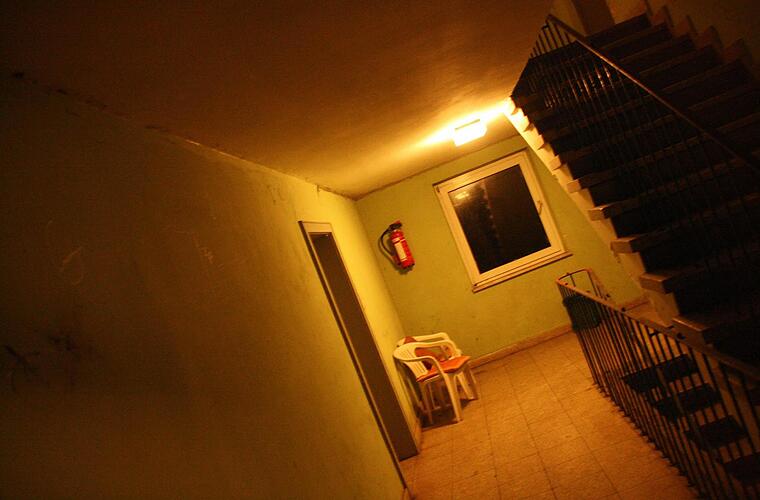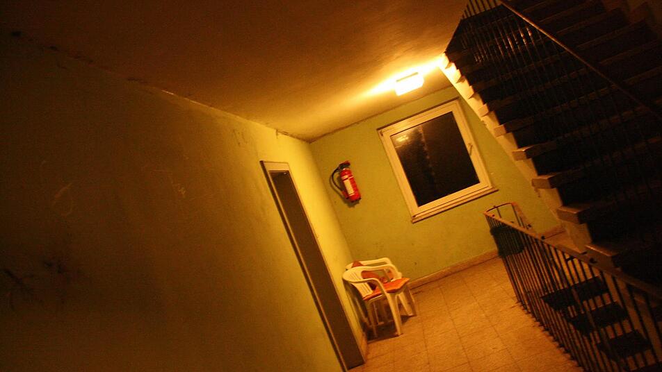 Der Flur hat den Charme einer zugigen, alten Bahnhofskatakombe. Verschmierte Bodenfliesen, Eisengeländer, Schmutz an den Wänden. Plötzlich geht das Licht aus - Zeitschaltung. Nur raus hier, raus aus dem dunklen, muffigen Flur, denkt sich der Besucher. Nur rein hier, heißt es dagegen für immer mehr "zwangsgeräumte" Menschen. Das Kitzinger Notwohngebiet erlebt einen Boom. Es ist kein positiver.