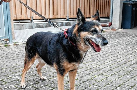 Die Hündin ist schon ein älteres Semester und trug bei ihrer Entdeckung ein buntes Stoffhalsband. Wer sie oder ihre Besitzer kennt, meldet sich im Kitzinger Tierheim unter Tel. (0 93 21) 50 63 oder geht ins Internet unter www.tierheim-kitzingen.de Foto: Harald Meyer