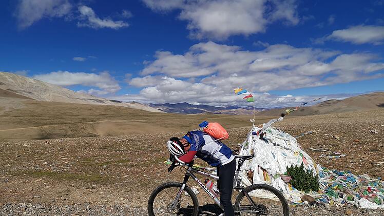 You're strong, take your time!“ Immer wieder spornt Songa, ein Nepali, den Deutschen an. 23 Kilometer geht es nur bergauf. Die Luft in fast 5000 Metern Höhe ist so dünn, dass Ralph Hartner zum Trinken anhalten muss. Was dem 59-jährigen Kitzinger in solchen Momenten am Limit hilft, ist der Gedanke an den einbeinigen Rikscha-Fahrer, dem er vor Tourbeginn begegnete. „Wenn jemand mit einer solchen Einschränkung sein Leben meistert, indem er Personen und ganze Stapel von Paketen befördert, dann kann ich mit zwei gesunden Beinen doch wohl jeden noch so hohen Berg hinauf radeln.“