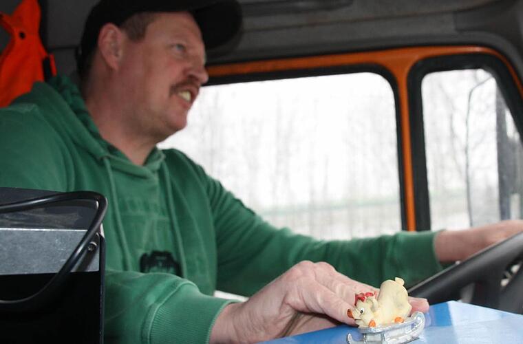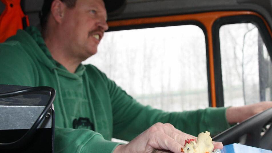 Das Schweinchen hat ihm seine Tochter Lisa geschenkt. Harald Schulze hat das Glückssymbol im Führerhaus seines Räumfahrzeugs befestigt. So hat er es immer im Blick. "Guten Rutsch" steht auf dem Ferkelchen, das auf einem Schlitten sitzt. Harald Schulze grinst. Er weiß: Die Betonung liegt auf "gut", nicht auf "Rutsch".