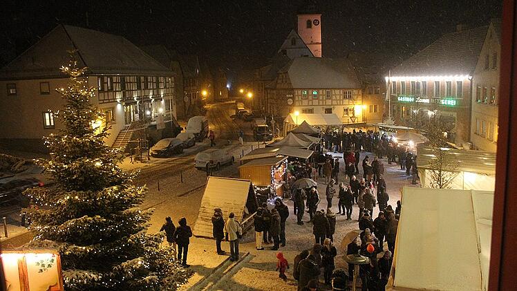 Am Marktplatz und erstmals im Innenhof des Rathauses hatten die Geiselwinder Gewerbetreibenden Stände mit dem Warenangebot aufgebaut – allem voran weihnachtlicher Dekoration und Kulinarischem. Zufrieden zeigten die Veranstalter vom Gewerbeverband „my geiselwind“ mit der 17. Auflage des Weihnachtsmarkts. Der Schnee habe dem Zuspruch keinen Abbruch getan, fand die Vorsitzende Doris Müller-Kern. Sehr gut besucht war auch der Samstagabend, wo die Gäste beim „Sternenzauber“ im Rathaushof im Schein von Feuerschalen Glühwein und Leckereien genossen. An diesem Abend sorgte der Posaunenchor aus Haag für die passende Untermalung.