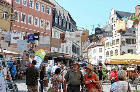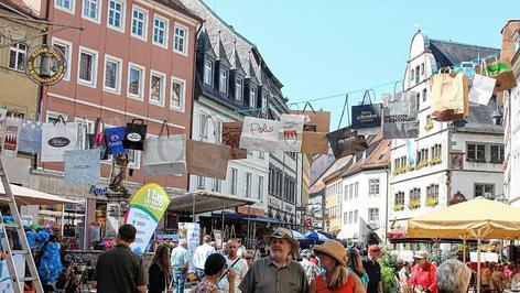 Bereits jetzt bieten viele Kitzinger Geschäfte als umweltfreundliche Transportmöglichkeit Papiertüten an. Dies war an einer großen Wäscheleine zu sehen, die am Marktplatz aufgehängt und mit zahlreichen Einkaufstüten bestückt war.