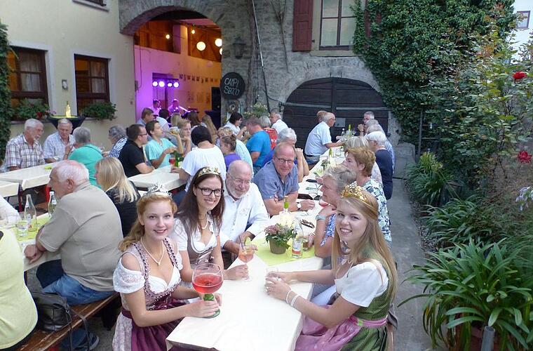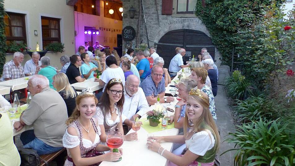 Dettelbach seine Kirchweih und die ganze Stadt verwandelte sich in eine Festmeile, als es hieß: Zu Gast beim Winzer. Zehn Weingüter und zahlreiche Gaststätten öffneten ihre Höfe und luden zum geselligen Schöppeln, Schlemmen und Tanzen ein. So war von traditioneller Musik bis hin zur elektronischen „House Music“ für Jung und Alt etwas geboten. Im Weingut Glaser-Himmelstoß gab es fränkisches Kabarett mit Mäc Härder, der dem Publikum zeigte, „wie der Franke wirklich ist“ und im Main-Street-Café wurde die Zeit mit einem kleinen „Woodstock Festival“ zurückgeschraubt.