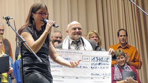 Mit permanentem Szenenapplaus und stehenden Ovationen bedankte sich das Publikum für Musik, Gesang Tanz und Unterhaltung – und spendete. Bei freiem Eintritt kamen knapp 3000 Euro bei dieser Veranstaltung zusammen; rund 1000 Euro davon resultierten aus einem Buffet, welches Bäckereien und Metzgereien aus Burghaslach, Markt Einersheim und Scheinfeld und sowie Edeka-Schmidt und Privatpersonen spendeten und anrichteten. Zusammen mit dem vorangegangenen Konzert in Iphofen und einem weiteren Konzert des Chores „ad libitum“ in Rödelsee konnten so rund 4300 Euro für die „Taifunhilfe Mittelfranken“ des evangelischen Dekanats Leutershausen gesammelt werden. Manfred Mohr bedankte sich auf der Bühne im Namen der Initiative bei den Musikern, Sängern und dem Publikum für die Spenden.