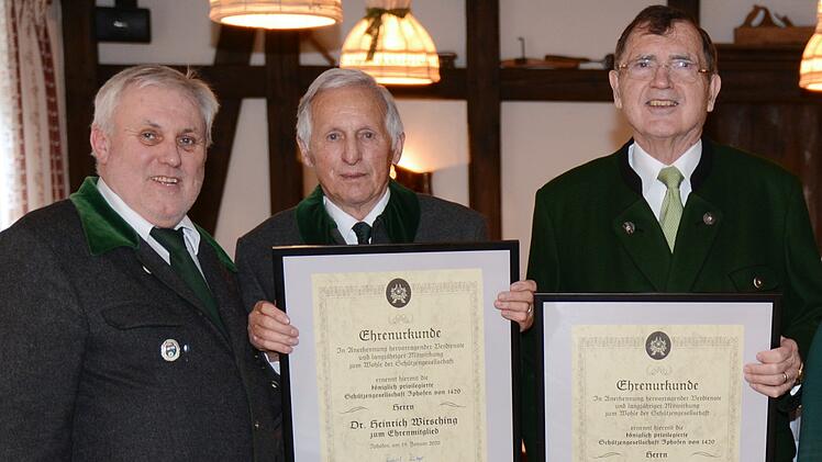 Der Höhepunkt der Sebastianifeier der Königlich Privilegierten Schützengesellschaft von Iphofen war die Ernennung von Baldwin Knauf und Heinrich Wirsching durch Schützenmeister Rudolf Rüttger zu Ehrenmitgliedern des Vereins.