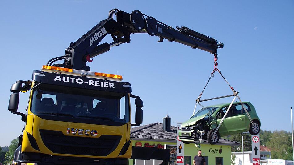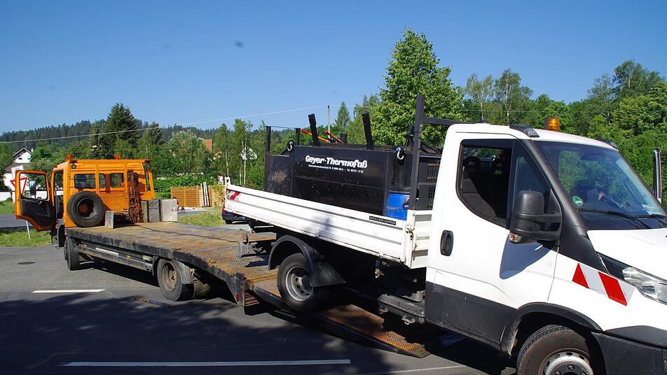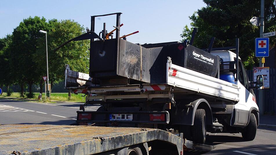 Nach dem Unfall um 7.50 Uhr musste der betroffene Bereich komplett abgesperrt werden. Während der Kleinwagen an den Haken genommen und auf das Abschleppfahrzeug gehoben werden konnte, war die Bergung des Kippers und seines Anhängers recht zeitaufwendig. Erst nach über zwei Stunden rollte der Verkehr wieder durch Stockheim. Zuvor hatte sich eine Schlange bis an die südliche Ortsdurchfahrt gebildet.