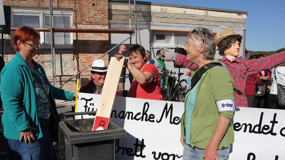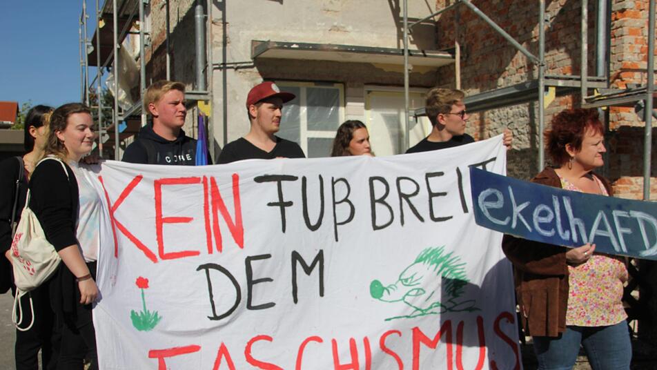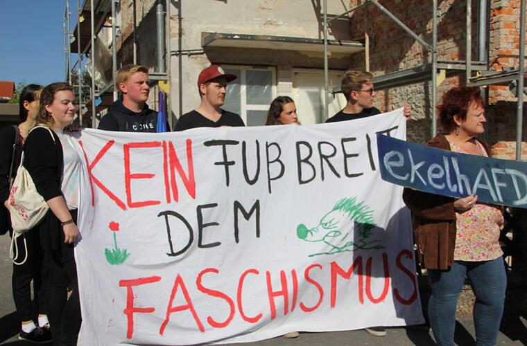 Draußen äußerten Bürger mit Protestschildern ihren Unmut. Vertreten waren auch heimische Politiker aus den verschiedenen Fraktionen und Regionaldekan Thomas Teuchgräber. "Stockheim ist bunt", war beispielsweise zu lesen. "Wir brauchen keine AfD, auch nicht in der ,Alten Zeche‘", meinte ein Anlieger.