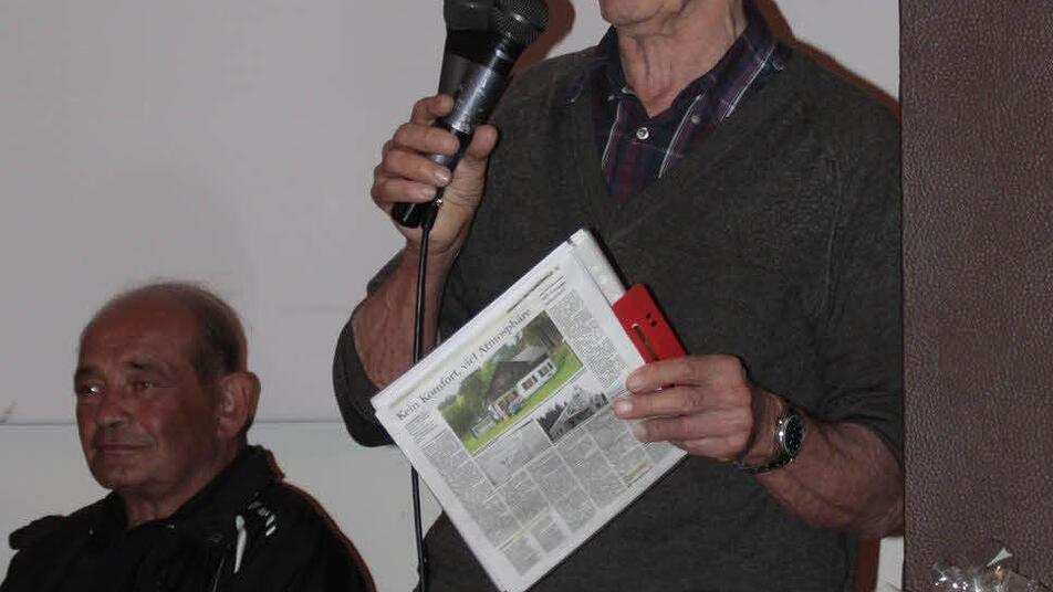"Es gab damals nie keinen Schnee im Winter, so dass wir immer alles von der Straße aus rauf tragen mussten", so Manfred Nerlich. Er berichtet auch von Schlittenrennen und außergewöhnlichen Nachtwanderungen und brachte alle im Saal zum Lachen.