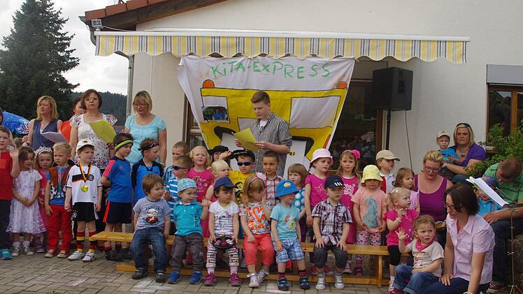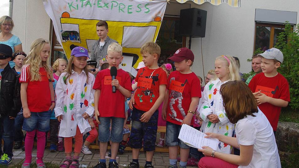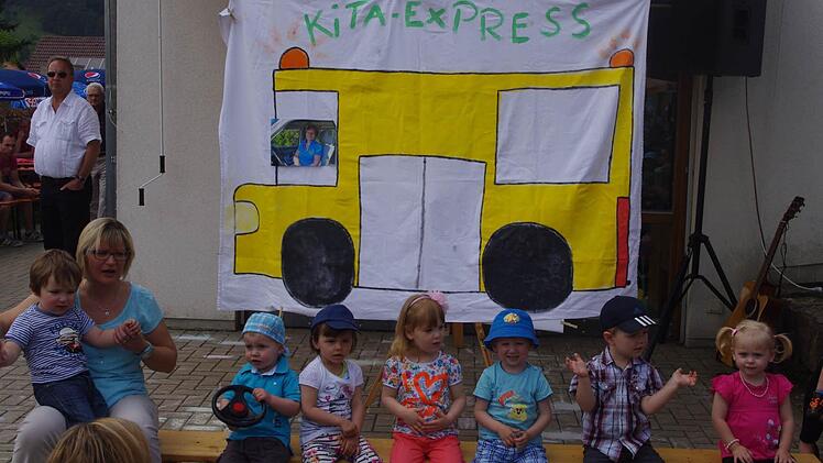 Die Jungen und Mädchen sagten dabei auf ihre ganz eigene Art Willkommen: mit dem Lied "Hallo, es geht einfach los" und dem Gedicht der Vorschulkinder "Willkommen, willkommen". Viel zum Lachen gab es beispielsweise beim Lied "Kindergartenbus", bei dem die Krippenkinder sangen und nachspielten, was jeden Vormittag im Kita-Express so alles abgeht.