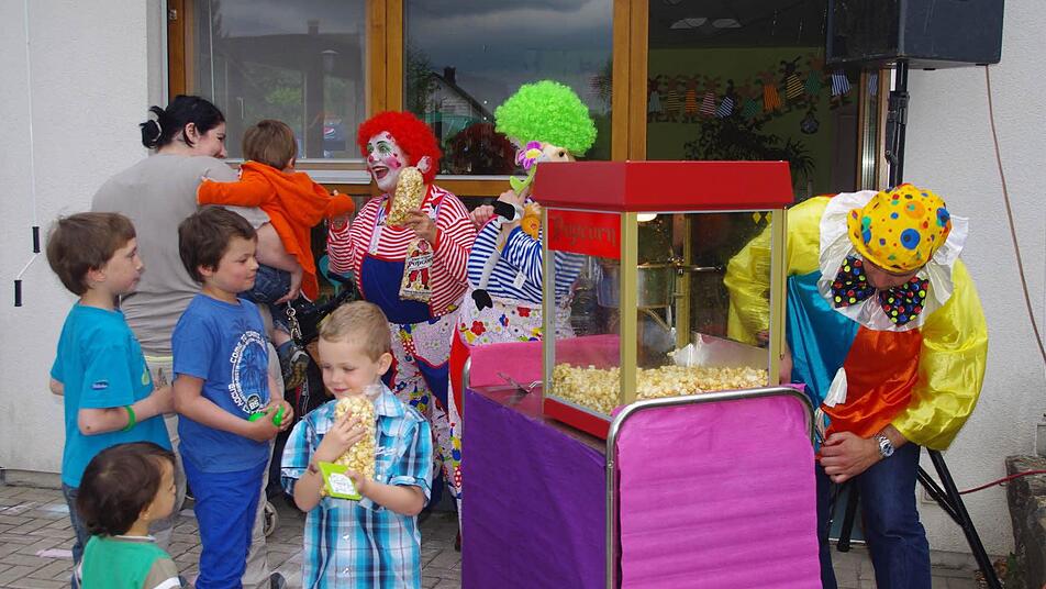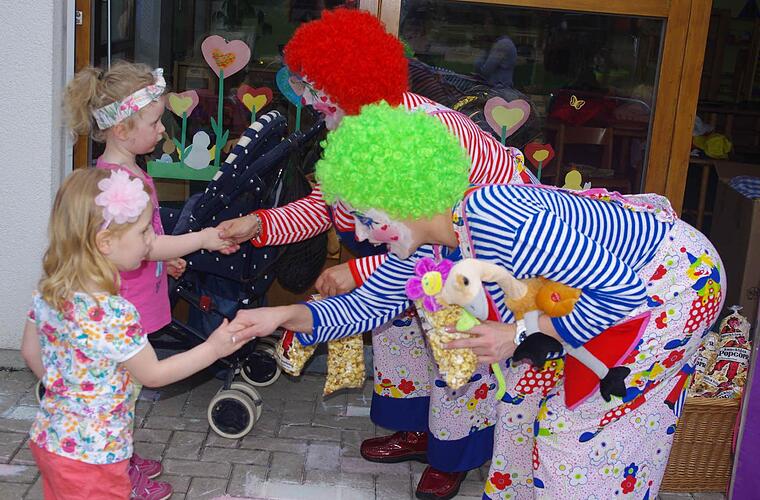 Die Maßnahmen seien mittlerweile bis auf Kleinigkeiten - wie die Pflasterung und das Aufbringen der Feinschicht auf die Straße - fertig gestellt. Der Betrieb war im März aufgenommen worden. Das Motto des Tages wurde bewusst ausgewählt: "Wir möchten, dass sich die Kinder hier wohlfühlen, dass sie gerne zu ihren Freunden und Spielkameraden kommen und mit viel Spaß und Freude neue Erfahrungen sammeln", erklärte Kita-Leiterin Waltraud Schultheiß. Der Bürgermeister hatte dann noch eine besondere Überraschung für alle Kinder: Er hatte - auf eigene Kosten - drei Clowns des "weltberühmten" Zirkus