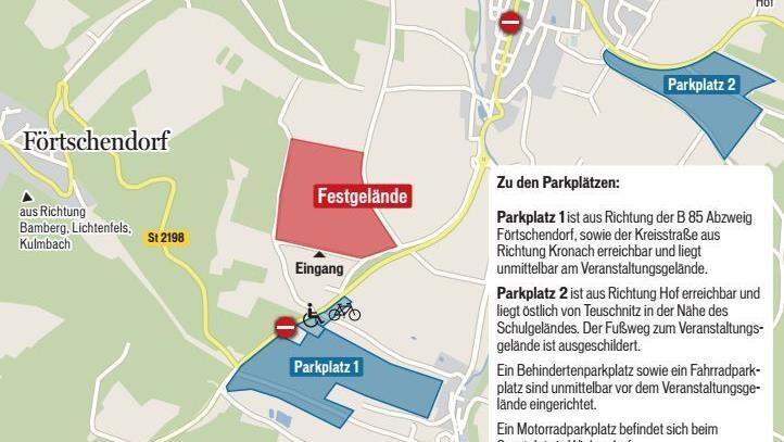 Auf dem Weg zur großen Party sollten die Besucher vorsichtig sein. Zum einen wird die Ortsdurchfahrt von Teuschnitz am Samstag gesperrt, zum anderen werden bei Wickendorf und östlich von Teuschnitz Großparkplätze angelegt, um ein Parkchaos im Umfeld des Festgeländes zu vermeiden.