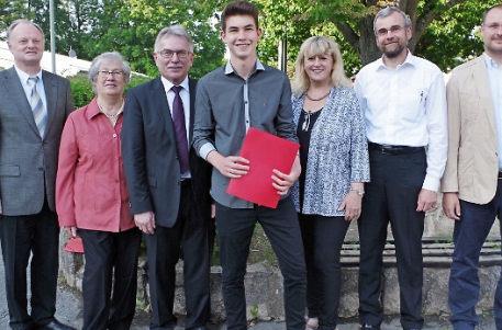 Andre Gareis hatte den besten Notenschnitt des Jahrgangs an der Küpser Mittelschule. Be i er Entlassfeier gab es die Zeugnisse.