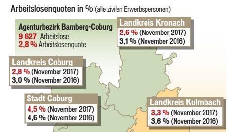 Im November ist im Agenturbezirk Bamberg-Coburg die Zahl der Arbeitslosen zum Herbstausklang nochmals weiter gesunken.