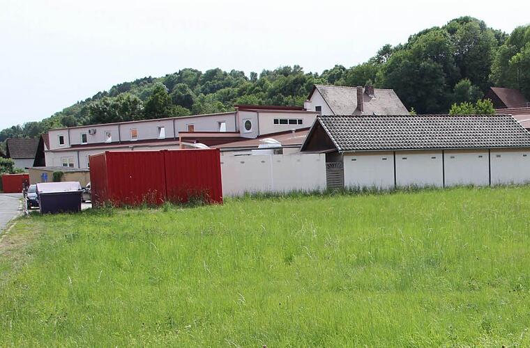 Zudem stünde dann noch das unbeaute Grudstück der Firma Jörg zum Verkaufl, außerdem hängt in der Raiffeisenbank das Nachbargrundstück der Firma Jörg als Gewerbegrundstück zum Verkauf aus.