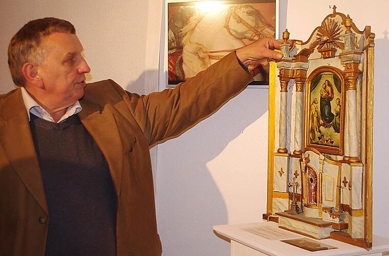 Georg Schneider war es auch, der in der Pfarrkirche St. Georg in die Ausstellung einführte und bei seinen spannenden Ausführungen großes Fachwissen an den Tag legte.