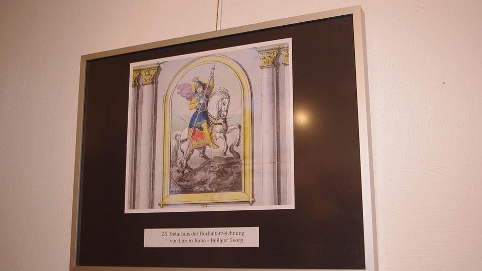 Bislang sei nur bekannt gewesen, dass das bis zum Neubau der jetzigen Pfarrkirche im Hochaltar integrierte Bild "St. Georg als Drachentöter" - im Gotteshaus zu sehen - von Lorenz Kaim stammt. Doch dieser war, wie der Pfarrarchivar durch akribische Recherchen nun heraus gefunden hat, in Friesen weitaus umfangreicher tätig. So war eine Vielzahl an Aktivitäten, Aufgaben und Einschränkungen nötig, um das Altarbild zu malen.