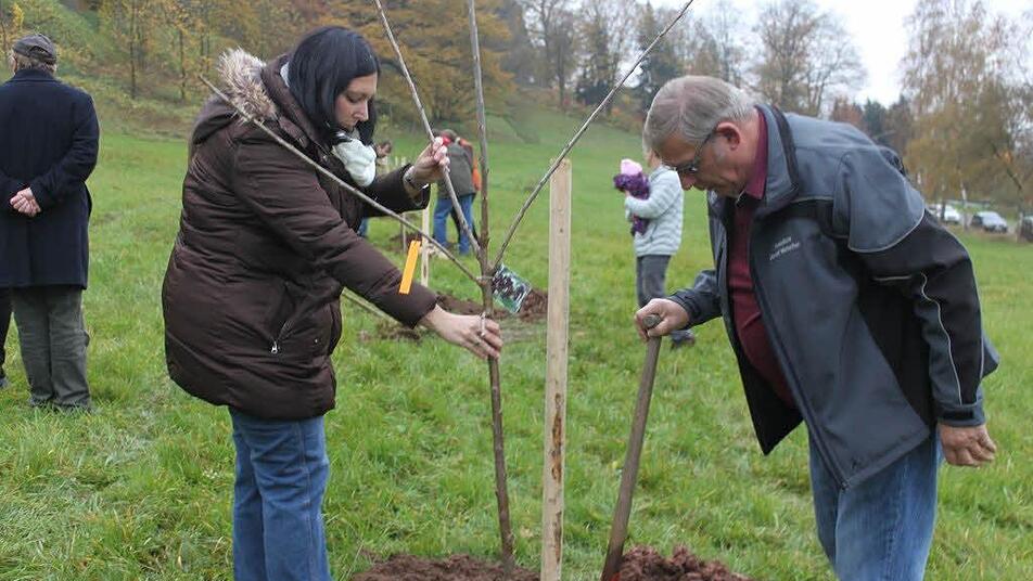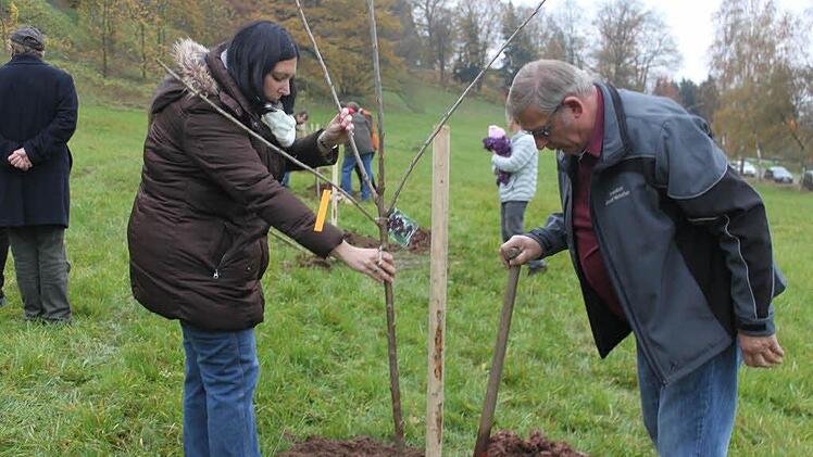 Zwölf weitere Bäume wurden am Freitagnachmittag unterhalb der Festung Rosenberg in der Haingasse im "Garten für neue Erdenbürger" gepflanzt.