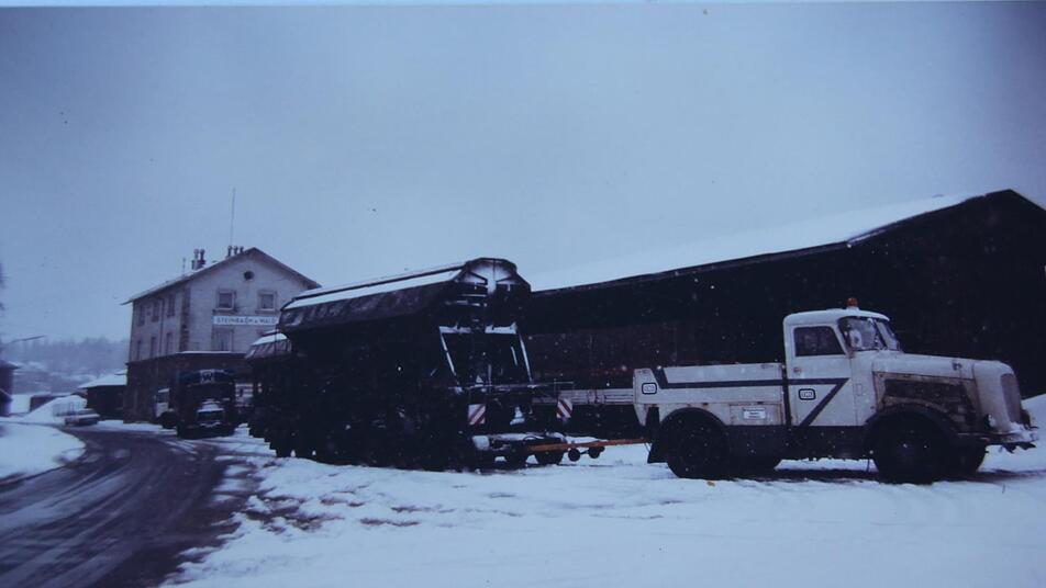 Viel mehr los als heute war damals auch am Steinbacher Bahnhof. "Hier hatten die Firma Wiegand und die Güterhalle einen Schienenanschluss", erinnert sich Rangiermeister Adam Fehn, der sich für unsere Redaktion zusammen mit den ehemaligen Culemeyer-Fahrern Reuth und Wicklein - alle drei wohnen in Pressig - am Verladegleis an die alten Zeiten erinnert.