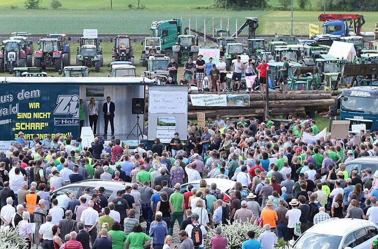 Die Landwirte demonstrierten in Neukenroth gegen einen weiteren Nationalpark.
