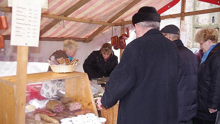 "Na, gut über den Winter gekommen? Schön, dass Ihr wieder da seid", begrüßt Siegfried Gruschwitz aus Kronach an diesem Samstagvormittag Andreas Sittig. Der Rentner und seine Ehefrau Brigitte sind schon seit vielen Jahren treue Stammkunden des Direktvermarkters. Trotz des ungemütlichen Wetters war der Besucher-Andrang beim ersten Bauernmarkt des Jahres gut.