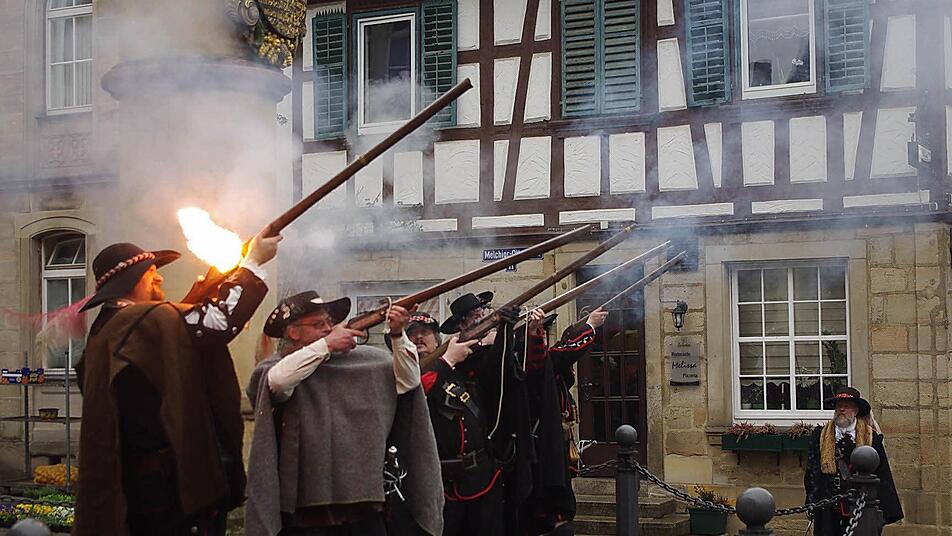 Stadthauptmann Walter Schinzel-Lang, der der Cronacher Ausschuss Compagnie das Kommando erteilt hatte, den Bauernmarkt mit Salutschüssen aus den Musketen zu eröffnen, ging auf die historische Verbindung von Stadt und Bauernmarkt ein. Zu jeder Stadt gehöre ein Markt. Deswegen verständen sich die Mitglieder der historischen Szene als Schirmherren des Bauernmarkts.