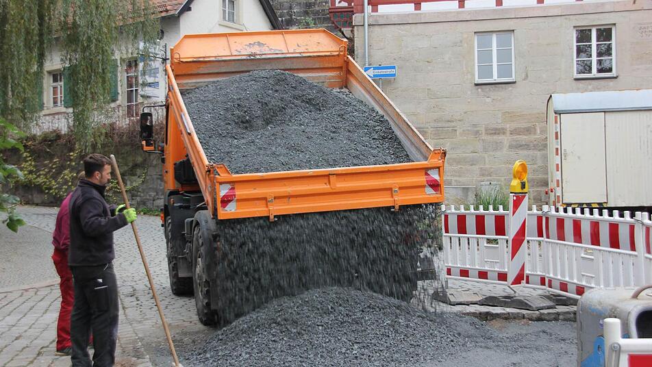 Der Graben, in dem der Kanal liegt, ist seit Freitag wieder verfüllt, aber Restarbeiten - vor allem an den Bordsteinen - werden sich bis Ende November hinziehen. Insgesamt entstehen Kosten von etwa 40 000 Euro.