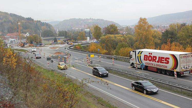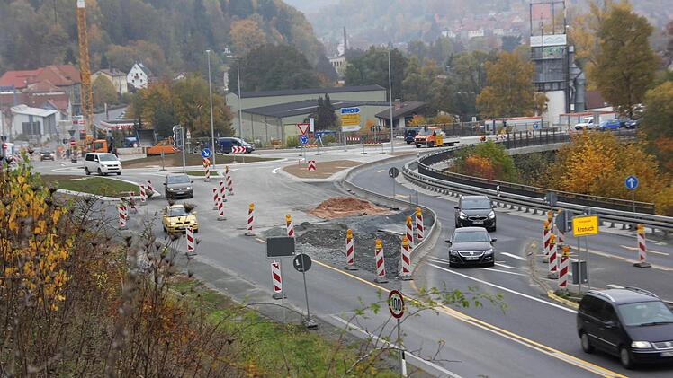 Jürgen Woll, Leiter der Servicestelle Kronach des Staatlichen Bauamts Bamberg, ist froh, dass die umfangreichen Arbeiten am Kreisverkehr der Südbrücke so reibungslos abliefen. Sein Ziel war es, dass der Kreisverkehr noch vor Wintereinbruch befahrbar ist. Das wurde locker erreicht, denn bereits am Mittwoch rollten die Fahrzeuge aus Richtung Nordbrücke über den Kreisel. Vorher war dieser Verkehrsstrom über einen der Bypässe geleitet worden.