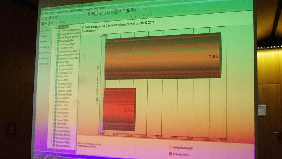 Wolfgang Beiergrößlein erringt mit über 77 Prozent der Stimmen einen deutlichen Sieg in der Kreisstadt. Der Herausforderer des Kronacher Bürgermeisters, Sven Schuster, setzt sich in keinem Stimmbezirk durch.