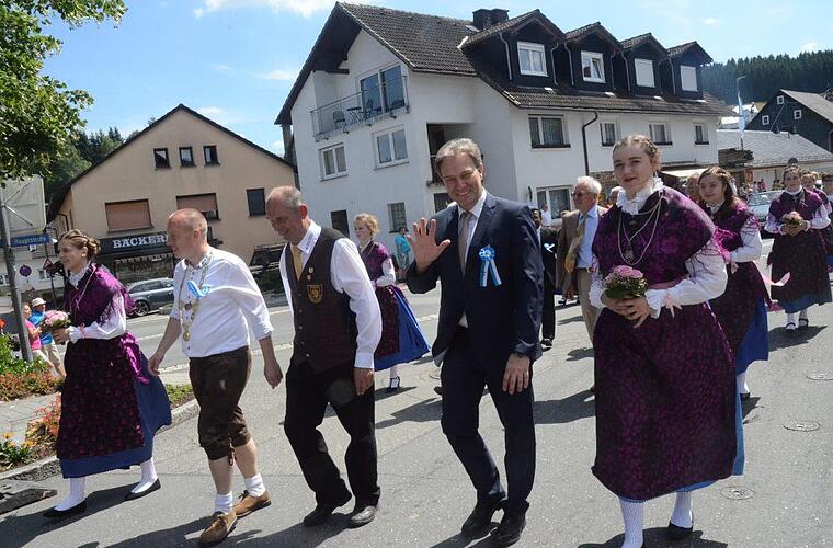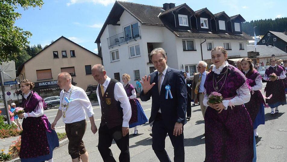 Schirmherr Landrat Klaus Löffler dankte im Namen des Landkreises für das große Engagement des Jubelvereins. Das Fest zeige deutlich den Zusammenhalt der Gemeinschaft in dem Frankenwalddorf in der Gemeinde Steinbach am Wald. "Sie alle leisten einen unverzichtbaren Beitrag für die Weiterentwicklung ihrer Heimat mit großem, ja herausragenden, ehrenamtlichen Engagement", lobte der Schirmherr. In seiner emotional bewegenden Ansprache motivierte der Landrat alle Ehrenamtlichen zum mutigen Weitermachen zur Gestaltung der Zukunft im Landkreis Kronach.