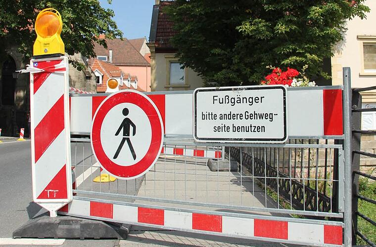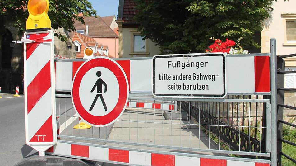Weil Mitarbeiter der Kronacher Stadtwerke nicht aufgepasst haben, musste nun ein Gehweg über die Kronacher Spitalbrücke gesperrt werden.