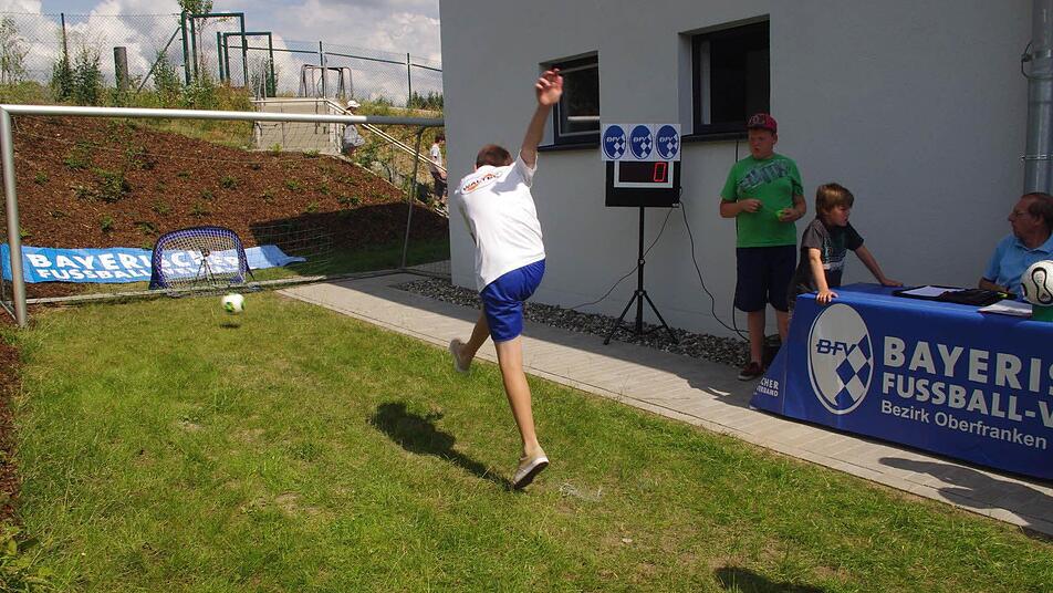 Nach dem Bühnenprogramm waren alle Gäste eingeladen, die neuen - von Schülern ausgewählten und vom Elternbeirat gesponserten - Pausespiele auszuprobieren. Vertreten waren weiterhin ein AOK-Stand mit Fühlbox, Quiz, Glücksrad und Spielen sowie eine Tormaschine mit Geschwindigkeitsmessung - betreut vom Schulfußballbeauftragten Lorenz Richter vom Bayerischen Fußballverband.