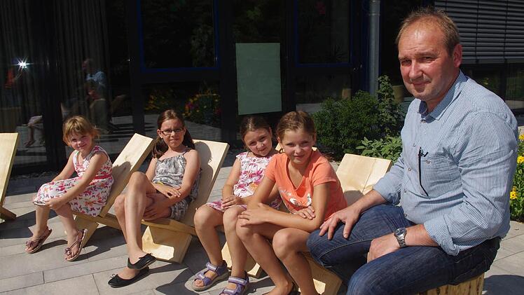 "Sessel" aus Douglasienholz "Wir haben im vergangenen Jahre eine wunderschöne Schule bekommen", sagte Schulleiter Ulrich Weiß. Zu jedem Klassenzimmer gehört auch eine gepflasterte Terrasse - insgesamt sechs Stück, auf denen bei gutem Wetter der Unterricht nach draußen verlegt werden kann. Hierfür bedurfte es natürlich auch entsprechender Sitzgelegenheiten. Ermöglicht wurde dies durch die Bayerischen Staatsforsten AöR/Forstbetrieb Nordhalben, die dafür Douglasien-Stämme spendeten.