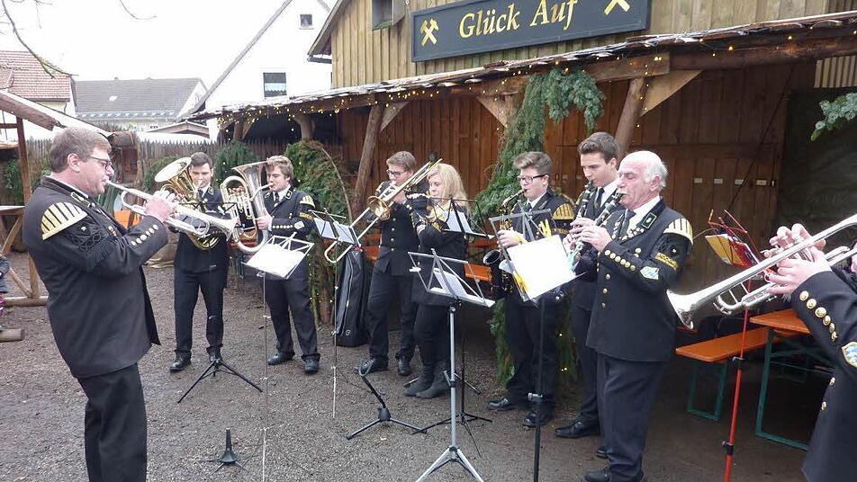 Musikalisch eröffnete ein Ensemble der Bergmannskapelle unter der Stabführung von Thomas Neubauer im Beisein des Knappenvereins mit Vorsitzendem Heiko Eisenbeiß die "Bergweihnacht". Zur Freude der Besucher waren anschließend die heilige Barbara, die Schutzpatronin der Bergleute (Nathalie Häfner), sowie die Bergknappen (Anton Schülner und Elias Renk) erschienen. Mit einem Gedicht zum Leidensweg der Märtyrerin wurde dem Auftritt eine besondere Note verliehen. Ebenfalls erinnerte Nathalie Häfner an die einstige Bedeutung der Stockheimer Kohle. So habe sie sich auch bei der ersten Eisenbahnfahrt zwischen Nürnberg und Fürth 1835 für die Erzeugung von Dampf bestens bewährt.