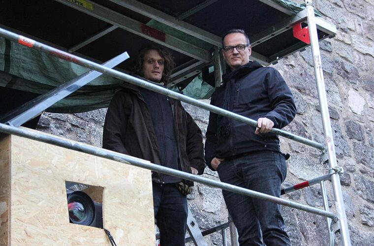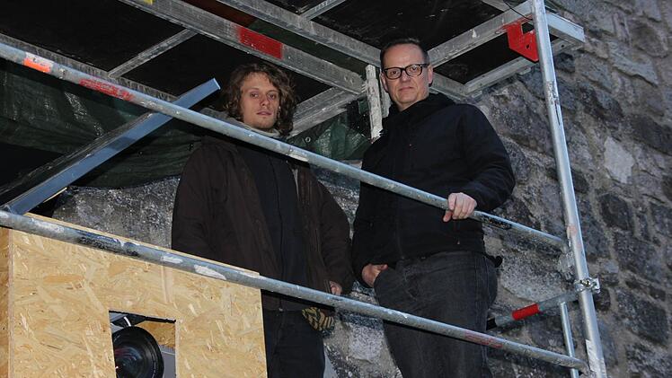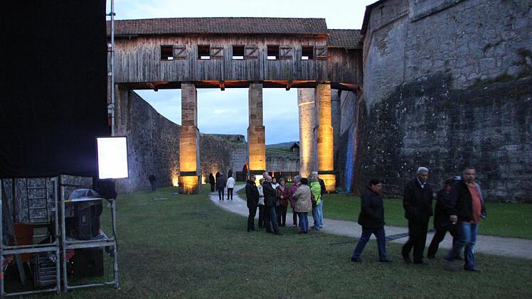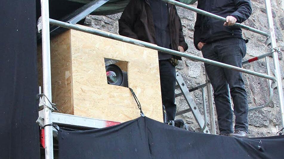 Bei einer Reihe von Tests suchte man nach dem richtigen Beamer, der optimalen Optik und dem passenden Platz für die Präsentation. Und so steht Raphael Schardt jeden Abend von 21.15 Uhr bis Mitternacht neben dem Beamer und spielt den "Sturm auf Kronach" fast nonstop ab. Das Interesse ist riesig. Selbst am verregneten Samstag standen zwischen 22 und 23 Uhr ständig mehr als 100 Besucher vor der Wallmauer.
