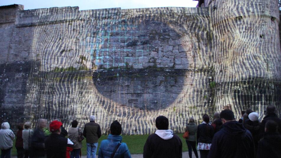 Raphael Schardt besticht mit einer außergewöhnlichen Videoprojektion im Wallgraben der Festung Rosenberg. Der Rotary-Club Kronach mit seinem Präsidenten Rolf Hering haben ihn sehr unterstützt. Die Präsentation ist ein Hingucker und Publikumsmagnet.