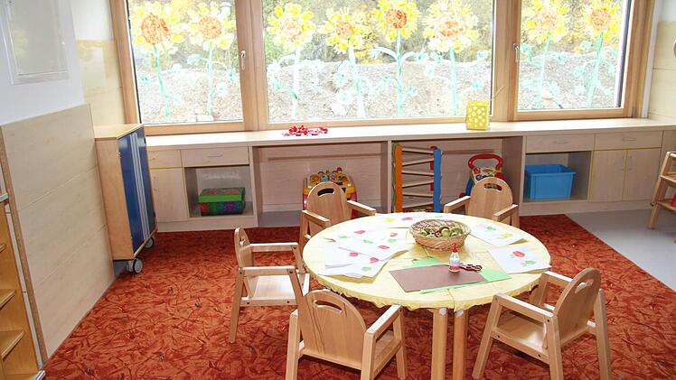 Derzeit toben zwölf Krippenkinder zwischen einem und drei Jahren durch die nagelneuen Räume. Einige Plätze sind noch frei. Denn die Krippe in Wallenfels ist für 18 Kinder unter drei Jahren ausgelegt. Total im Trend liegt das Spielen mit den neuen gelben Baggern. Denn genau solche Bagger arbeiten vor den Fenstern und legen derzeit die Außenanlagen für die Allerkleinsten an. Natürlich brauchen die Unter-Dreijährigen einen eigenen Bereich.