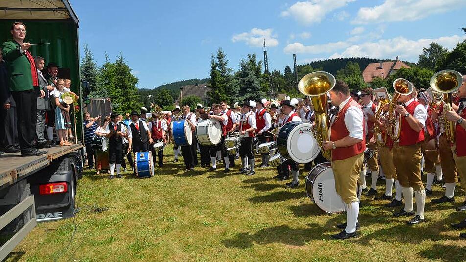 Festzug und Gemeinschaftschor waren bewegend und ergreifend, sagte der Schirmherr und Landrat in seinen Grußworten an Hunderte von Musikanten, die in großer Hitze ihr Bestes gaben.