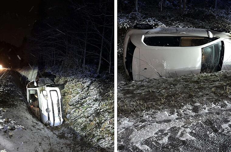 In einer Linkskurve sei die Autofahrerin auf der "schneebedeckten und winterglatten Fahrbahn" nach rechts von der Straße abgekommen, erklärt die Polizei.
