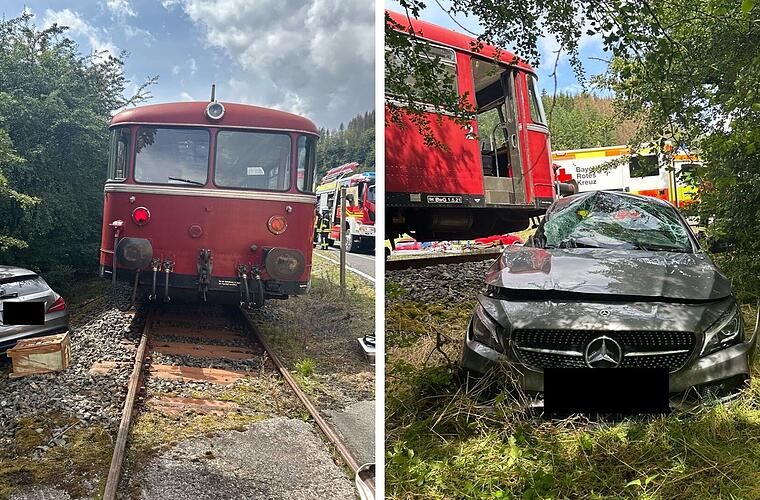 Ein ungewöhnlicher Verkehrsunfall hat sich im Kreis Kronach ereignet: Ein Auto stieß mit einem historischen Zug der Rodachtalbahn zusammen. Zwei Personen mussten ins Krankenhaus.