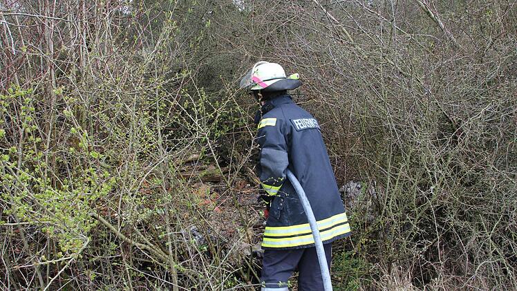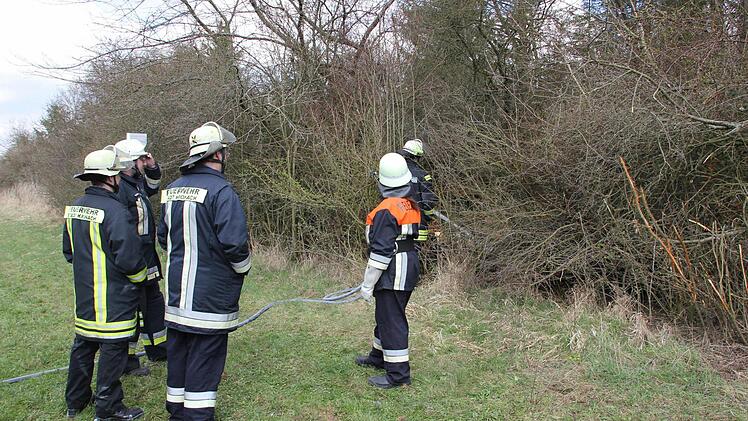Gute Dienste weitab eines Flusses oder Hydranten leistete das Tanklöschfahrzeug der Kronacher Wehr. Nur ein kleiner Teil des 4500 Liter fassenden Tanks musste eingesetzt werden.