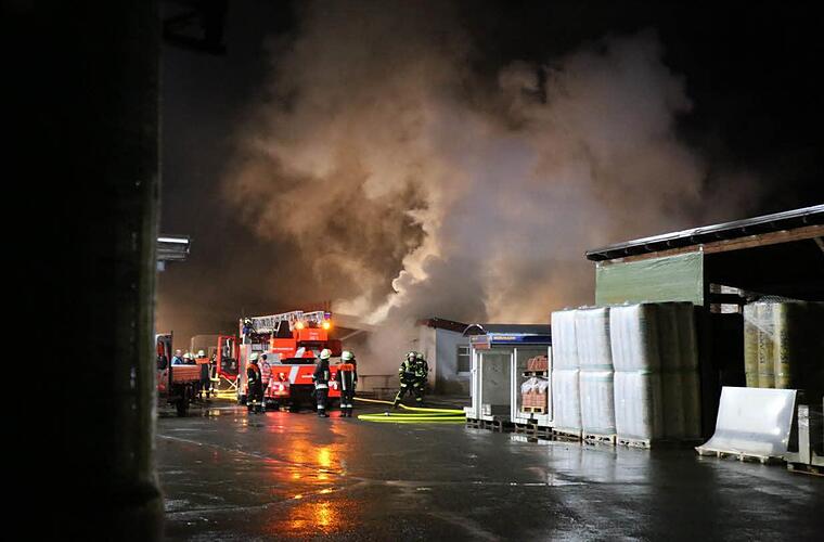 Beim Eintreffen der ersten Rettungskräfte schlugen aus dem Verwaltungsgebäude bereits Flamen. Mehr als 100 Einsatzkräfte der Feuerwehr bekämpften erfolgreich das Feuer, das bereits auf eine angrenzende Lagerhalle übergegriffen hatte. Die Löscharbeiten dauerten bin in die frühen Morgenstunden an.