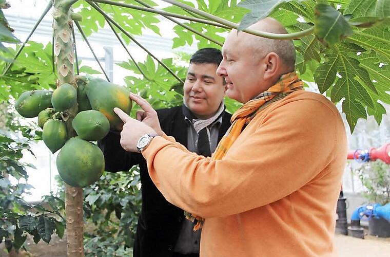 Dass das Tropenhaus nicht nur auf die einheimische Bevölkerung eine Faszination ausübt, wurde am Montagmittag wieder einmal sichtbar. Denn da war Guarani de Morais von der brasilianischen Botschaft in Berlin mit einer Abordnung von agrarwirtschaftlichen Produzenten aus Brasilien zu Besuch.
