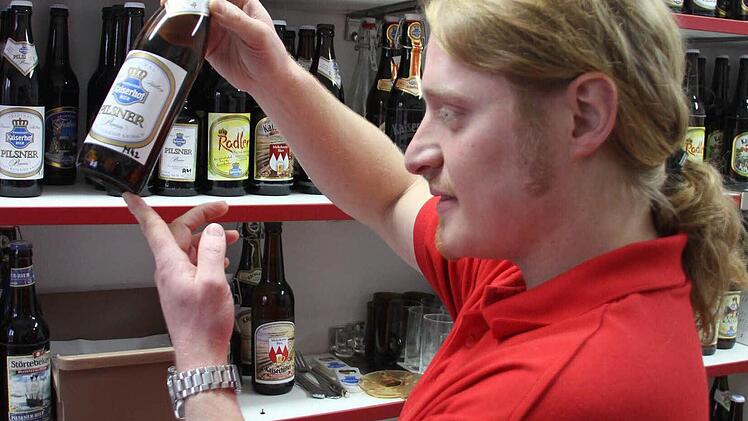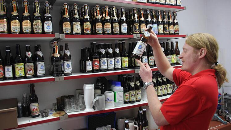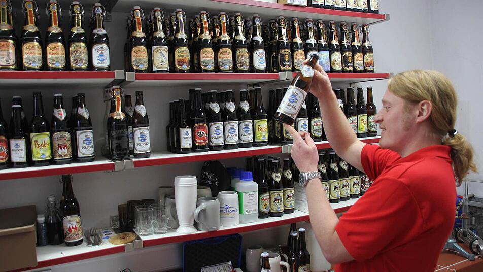 angefertigte Tonkrüge mit jeweils einem Partnerschaftsmotiv, bei Sammlern in England begehrt. Die Engländer nennen die Krüge, in die ein Seidla passt, "Steins". Das Emblem für die Bierkrüge, die dieses Wochenende die Runde machen, hat Rob Smith entworfen, denn auf der Bierbrauer-Meisterschule lernte er auch das Gestalten von Etiketten. Damit kommen wir zum Grund, warum Robert Smith Bier für die Briten braut, denn er tut das auch für die Frankenwälder, denn Robert Smith arbeitet als Braumeister bei der Kronacher Kaiserhof-Bräu.