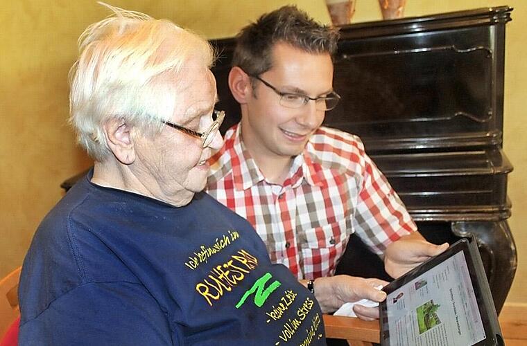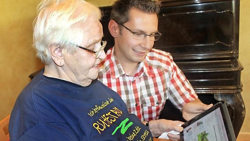 Für Margit Bayerlein ist es nicht die Normalität, sich mit Internet und Computer auseinandersetzen. Jetzt aber, nachdem der BRK-Kreisverband eine neue Kommunikations- und Informationsplattform erstellt hat, ist die 82-Jährige trotzdem neugierig geworden. Sie sitzt an einem Tablet-PC, der Heimleiter des BRK-Seniorenhauses, Harald Schubert, zeigt ihr die neue Homepage.