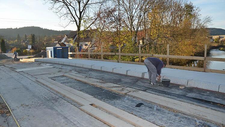 "Und die Tragfähigkeit, die bisher bei zwölf Tonnen lag, ist auf Grund der neuen Konstruktion unbeschränkt", erklärt Bauleiter Udo Madewitz, zuständig für Tiefbau, vom Ingenieurbüro HTS Plan GmbH, Kronach. "Es wurden 200 Kubikmeter Beton und rund 25 Tonnen Stahl verbaut", so Madewitz.