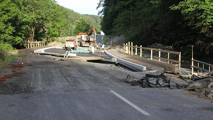 Aber nicht mehr lange: Kurt Schnabel, Leiter des Staatlichen Bauamts Bayreuth, das das Projekt betreut, stellte eine baldige Verkehrsfreigabe in Aussicht. Auf Grund günstiger Umstände (der Witterung sowie der zügigen Abwicklung durch die ausführende Firma) hoffe man, die Staatsstraße für den öffentlichen Verkehr bis spätestens Ende Juli freigeben zu können. Die Teilerneuerung der Brücke hatte am 19. Mai begonnen und muss bis zum 8. August abgeschlossen sein.
