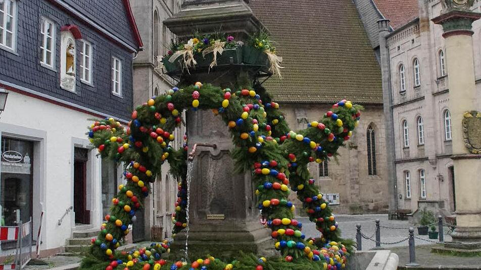 Bunte Eier, zart gefärbte Schleifen und lustig grinsende Holzhäschen - der Frankenwald zeigt sich mit seinen Osterbrunnen an den Feiertagen wieder besonders einladend.