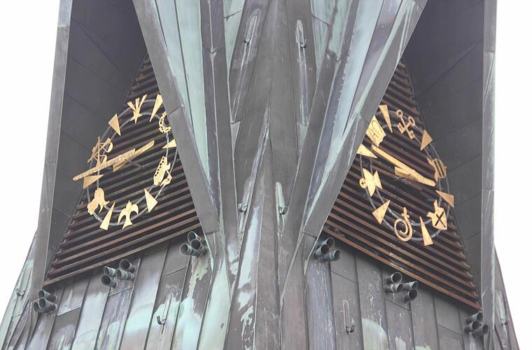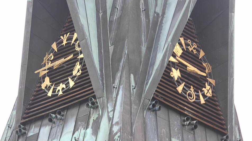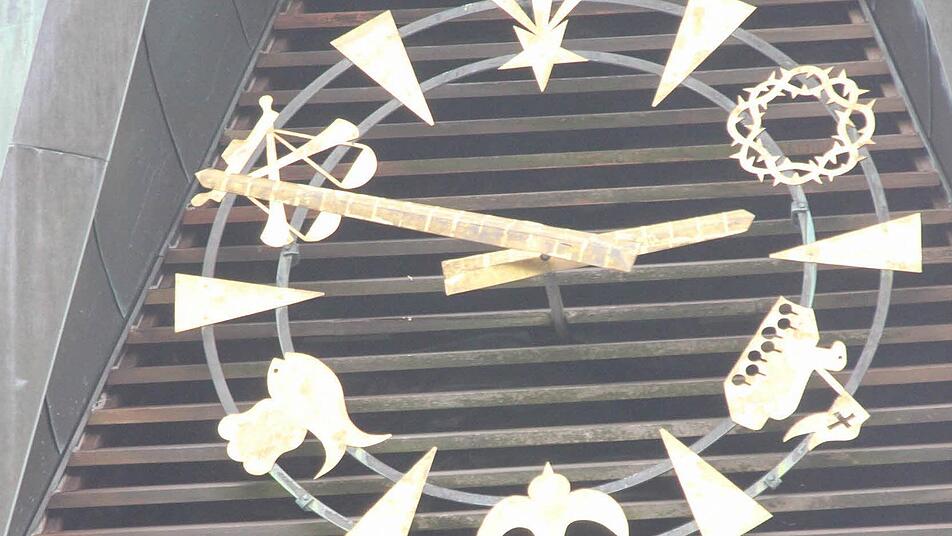 Die Turmuhr der Kirche St. Laurentius Buchbach hat besondere Zifferblätter. Der damalige Pfarrer Reinhold Goldmann hatte die Idee dazu, als das moderne Gotteshaus in den Jahren 1970 und 1971 errichtet wurde. Dabei halfen die Gläubigen mit. Einer schuf die Zifferblätter. Wir zeigen eine Fotostrecke.
