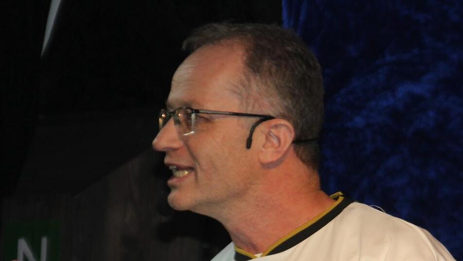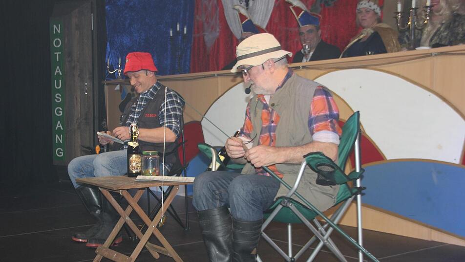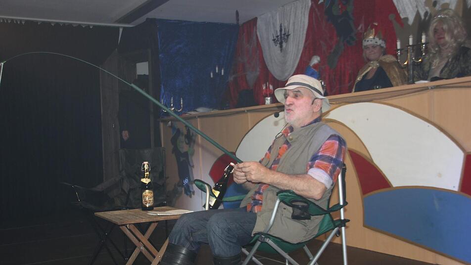 Bürgermeister Hans Pietz gab in seiner Büttenrede wertvolle Angeltipps. Angler bräuchten lange Arme, so Pietz, schließlich müssten sie anzeigen, wie groß der Fisch war, den sie an Land gezogen haben.